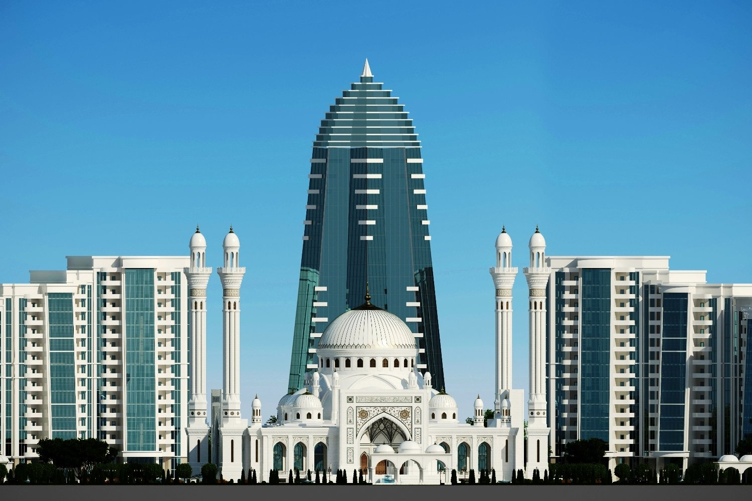 Мечеть «Сердце Чечни» им. Ахмат-Хаджи Кадырова в г Грозный - одна из самых больших мечетей мира, которая располагается на живописном берегу реки Сунжа, посреди большого парка. Мечеть построена в классическом османском стиле. В качестве основы архитектуры использована Голубая мечеть в Стамбуле.